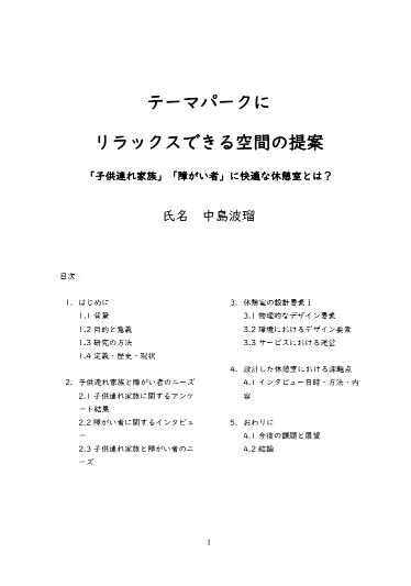 作品紹介:「テーマパークにリラックスできる 空間の提案」