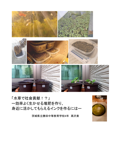 作品紹介:「『水草で社会貢献!?』 ー効率よく生かせる堆肥を作り、 身近に活かしてもらえるインクを作るにはー」