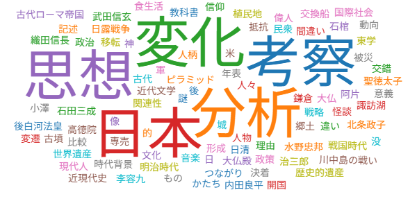 まずは簡単に「自由すぎる研究EXPO」に寄せられた「歴史」の作品のタイトルに登場したキーワードを眺めてみよう。